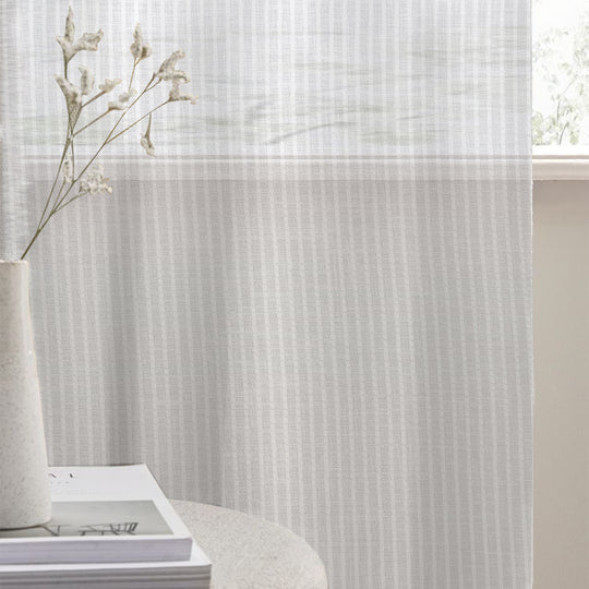 Ocean Linen-Look Sheer Curtains – Horizontal Stripe Light-Filtering Panels